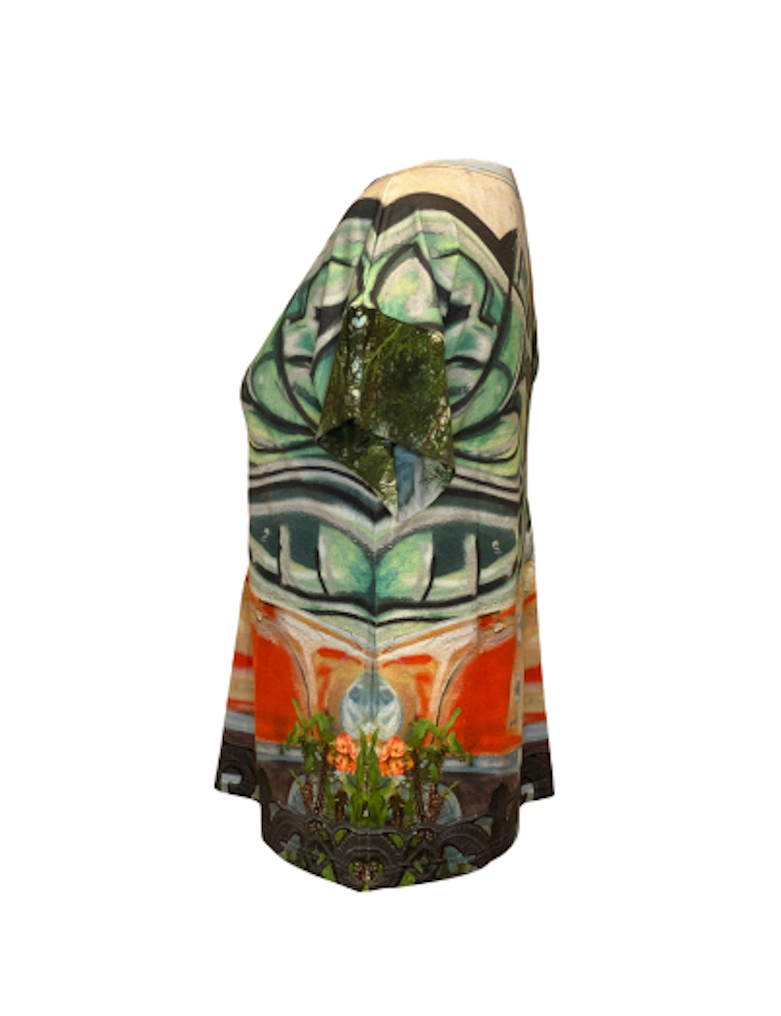 Feines Viskose-Jersey Shirt mit raffinierten Falten und auffälligem Print