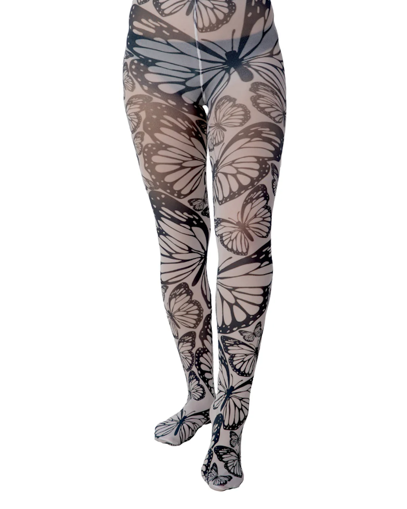 Lass deinen Look flattern und fliegen mit unserer Butterfly Mayhem Printed Strumpfhose.
