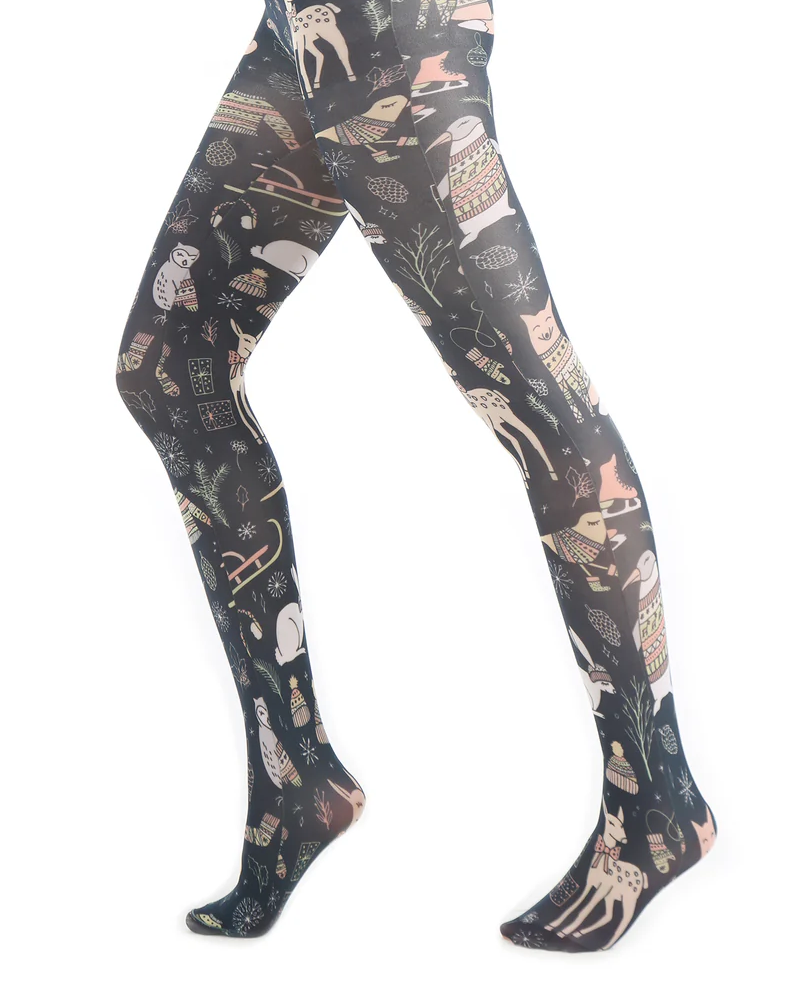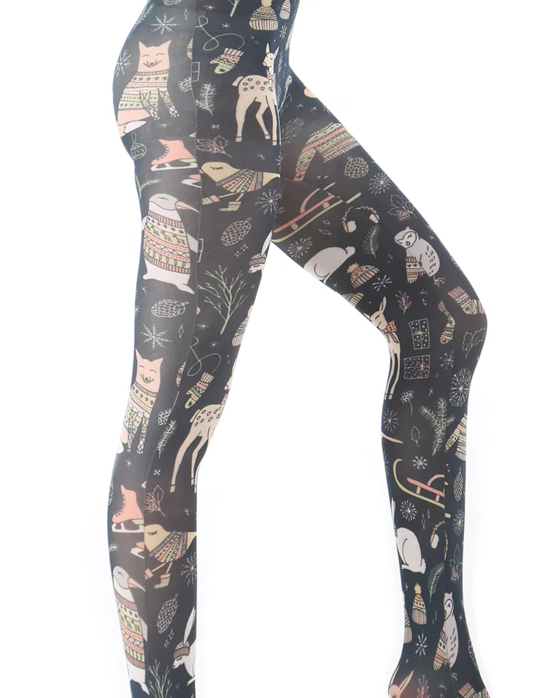 Verleihe deinem Outfit eine Extraportion weihnachtliche Freude mit unserer Christmas Woodland Animals Printed Strumpfhose.