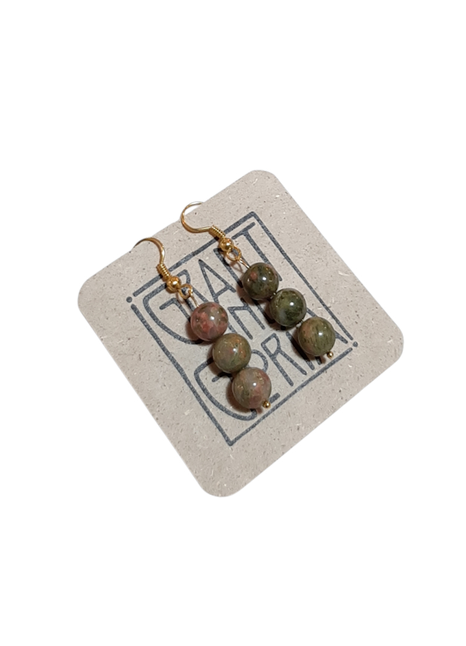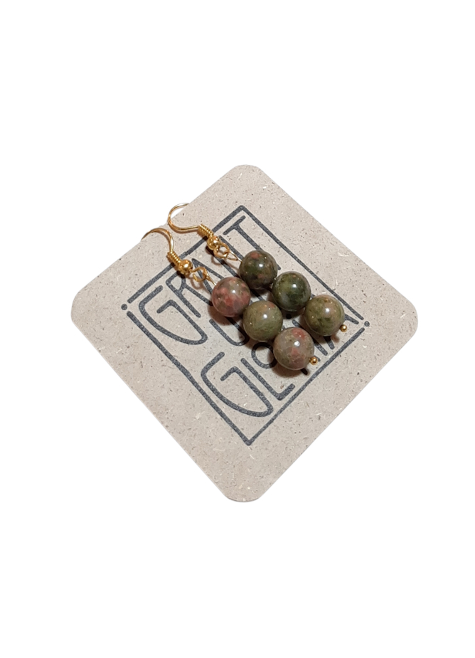 Unikat - Drei runde Halbedelsteinkugeln pro Ohrring