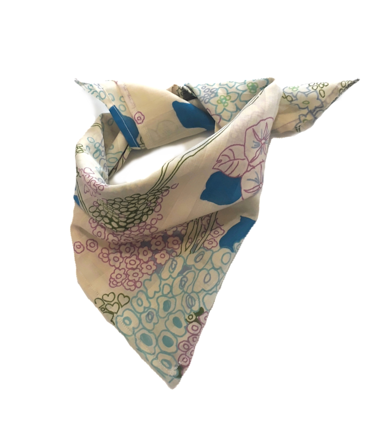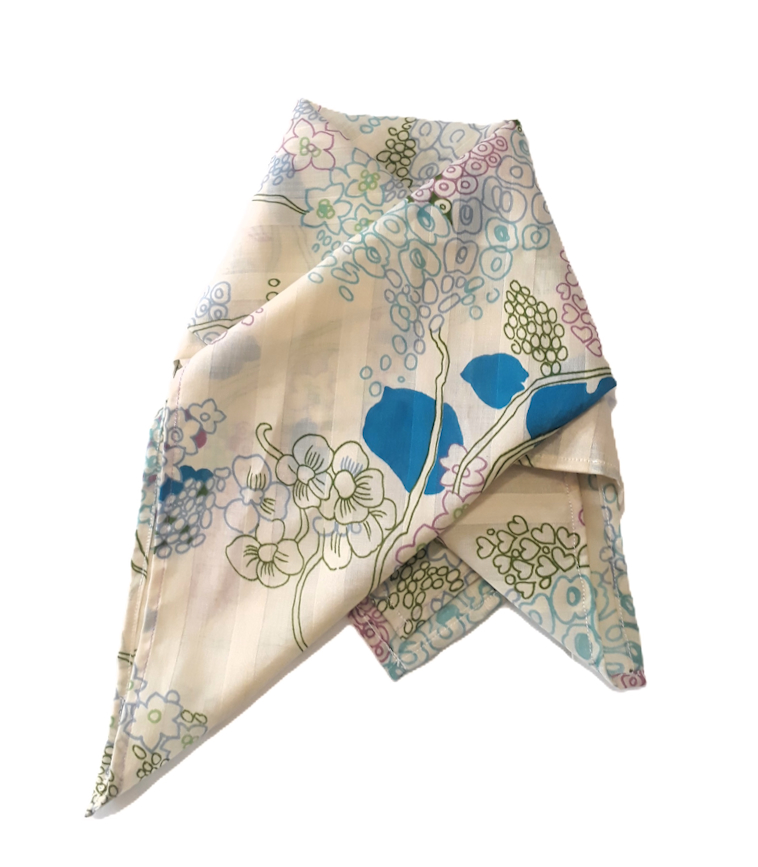 Quadratisches Tuch mit zartem Blütenmuster aus leichtem Material und daher atmungsaktiv, ist es perfekt für jede Jahreszeit