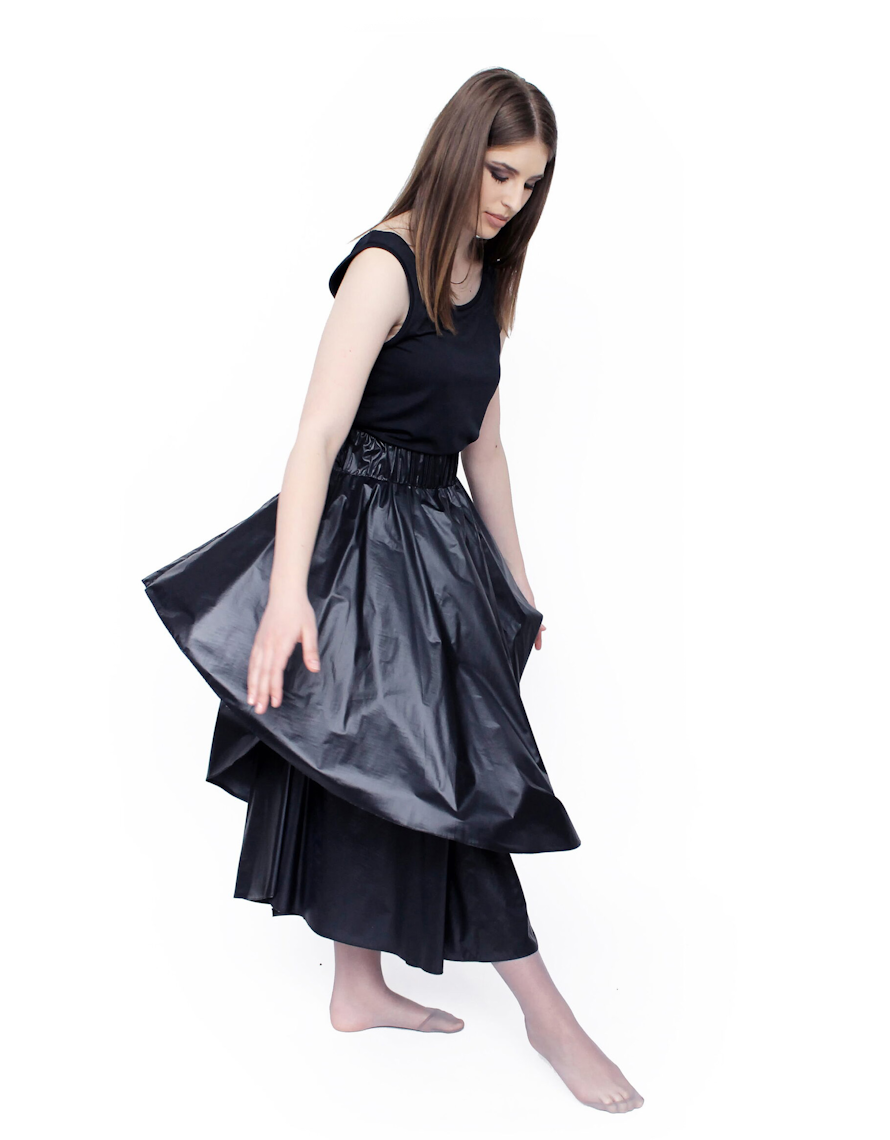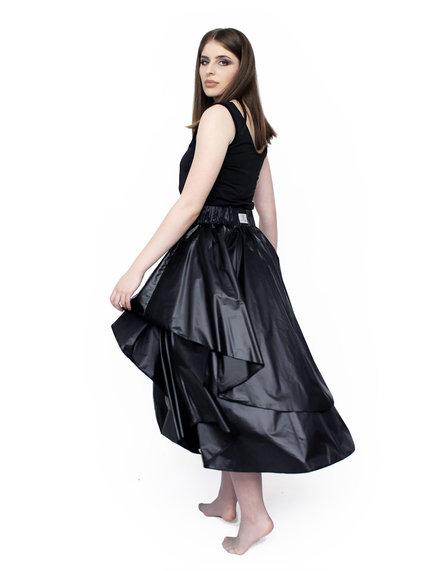 Gefertigt aus besonders leichtem Stoff: Ballonseide (Fallschirmstoff), schwebt der Rock förmlich um die Beine und sorgt für einen unvergleichlich weichen, fließenden Fall.