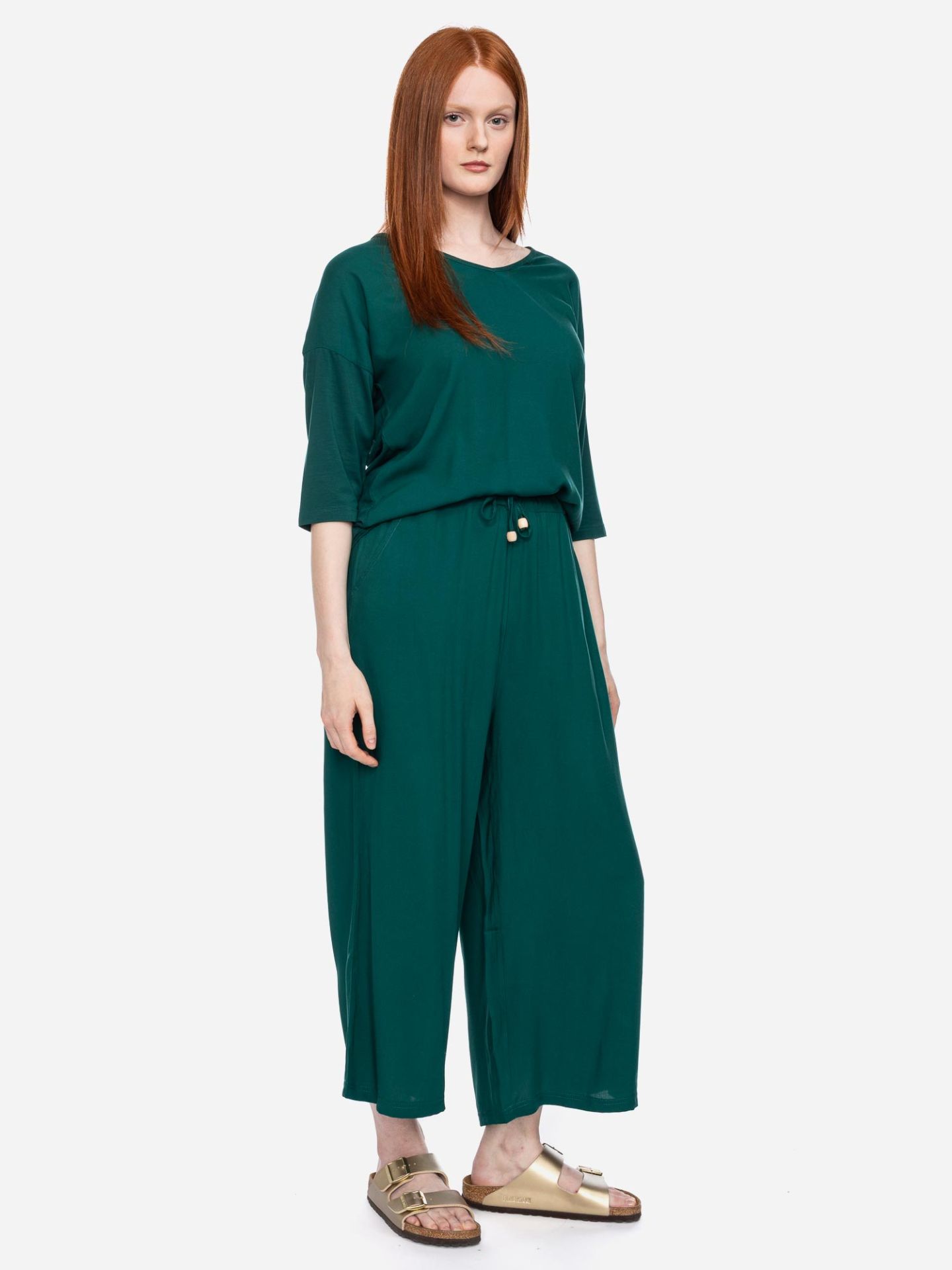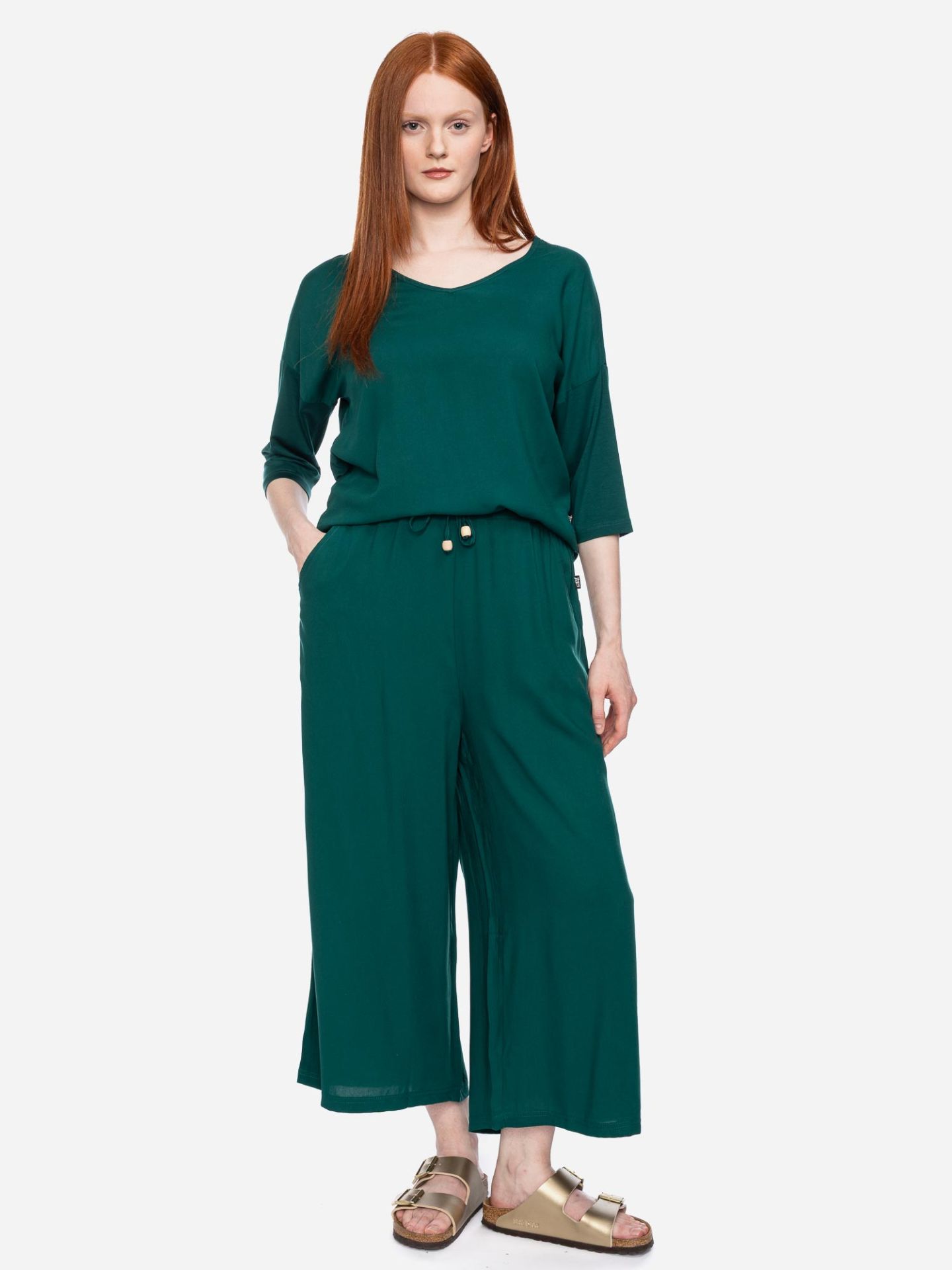 Gefertigt aus nachhaltiger LENZING™ ECOVERO™ Viskose, begeistert sie mit einem fließenden Fall, angenehmer Leichtigkeit und einer edlen Farbe in dunklem Smaragdgrün. Ideal für warme Tage, stilvolle Sommerlooks und entspannte Alltagsoutfits.