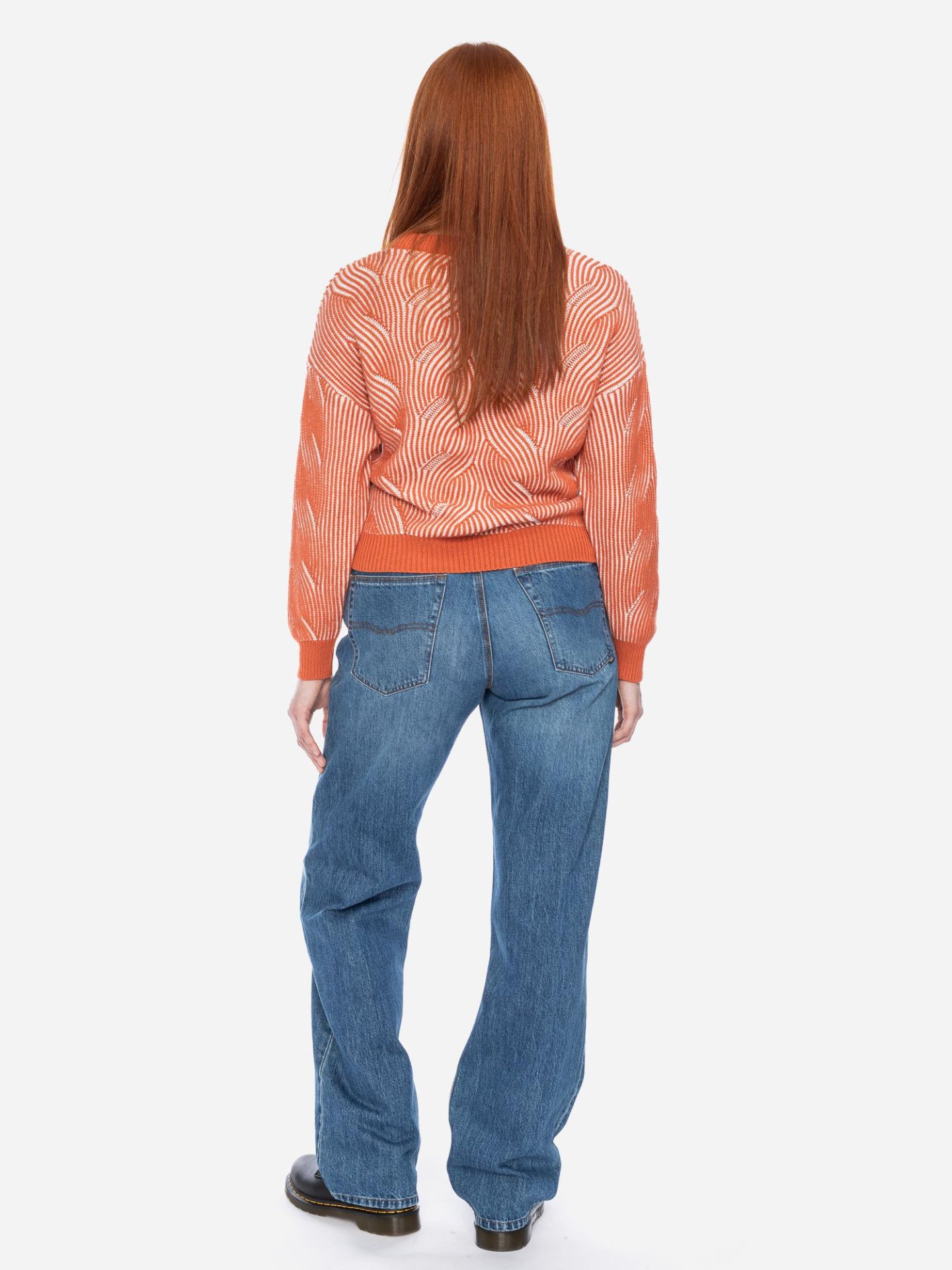 Dieser Strickpullover bringt frischen Schwung in dein Outfit: Das moderne Muster in Orange und Creme kombiniert lebendige Farben mit zeitloser Eleganz und setzt ein echtes Statement. Egal, ob du ihn entspannt zur Jeans trägst oder stilvoll kombinierst – dieser Pullover passt sich deinem persönlichen Stil an. Das besonders weiche Material aus 100 % GOTS-zertifizierter Bio-Baumwolle sorgt für ein angenehmes Tragegefühl und verwöhnt deine Haut – ganz ohne Jucken oder Kratzen. Mit seinem komfortablen Schnitt, dem klassischen Rundhalsausschnitt und den elastischen Bündchen wird Raine schnell zu deinem Lieblingsstück für jede Saison.
