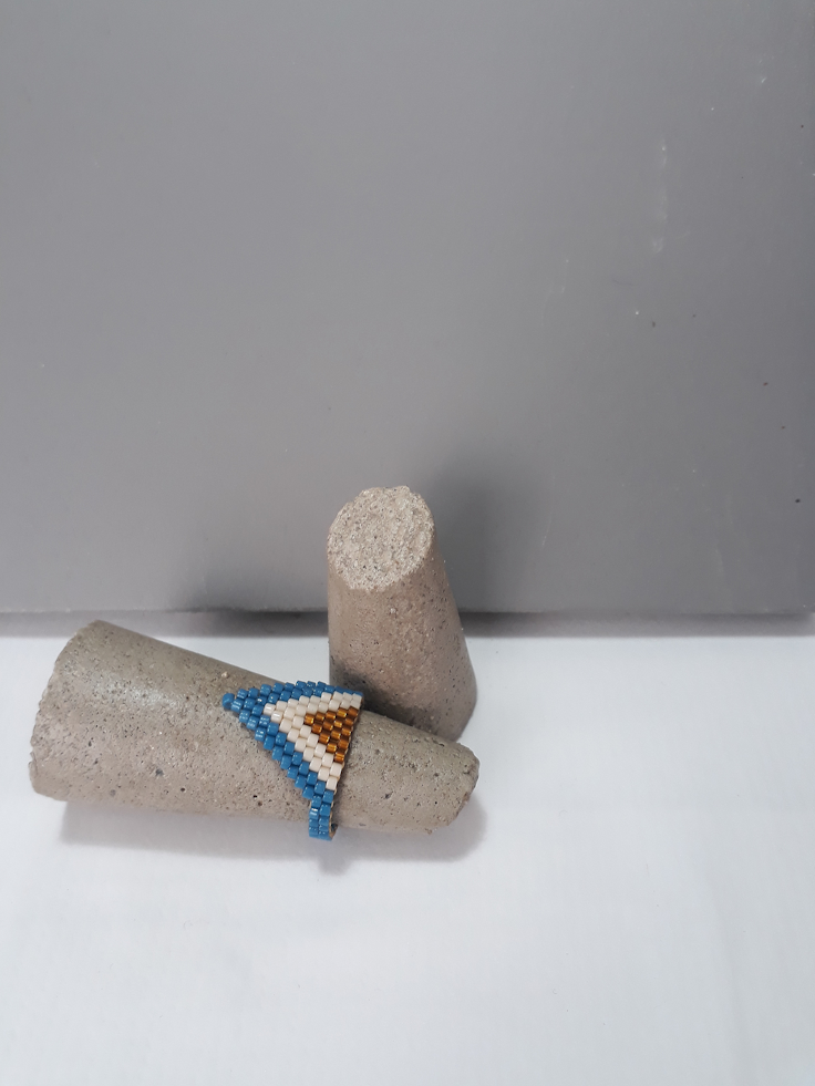 Zarter Ring genäht aus Perlen in verschiedenen Farben