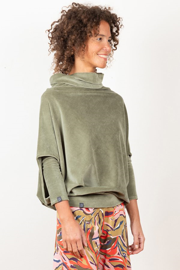 Entdecke den handgemachten Pullunder aus Nickisamt in zartem Oliv – die perfekte Kombination aus Stil, Komfort und Qualität.
